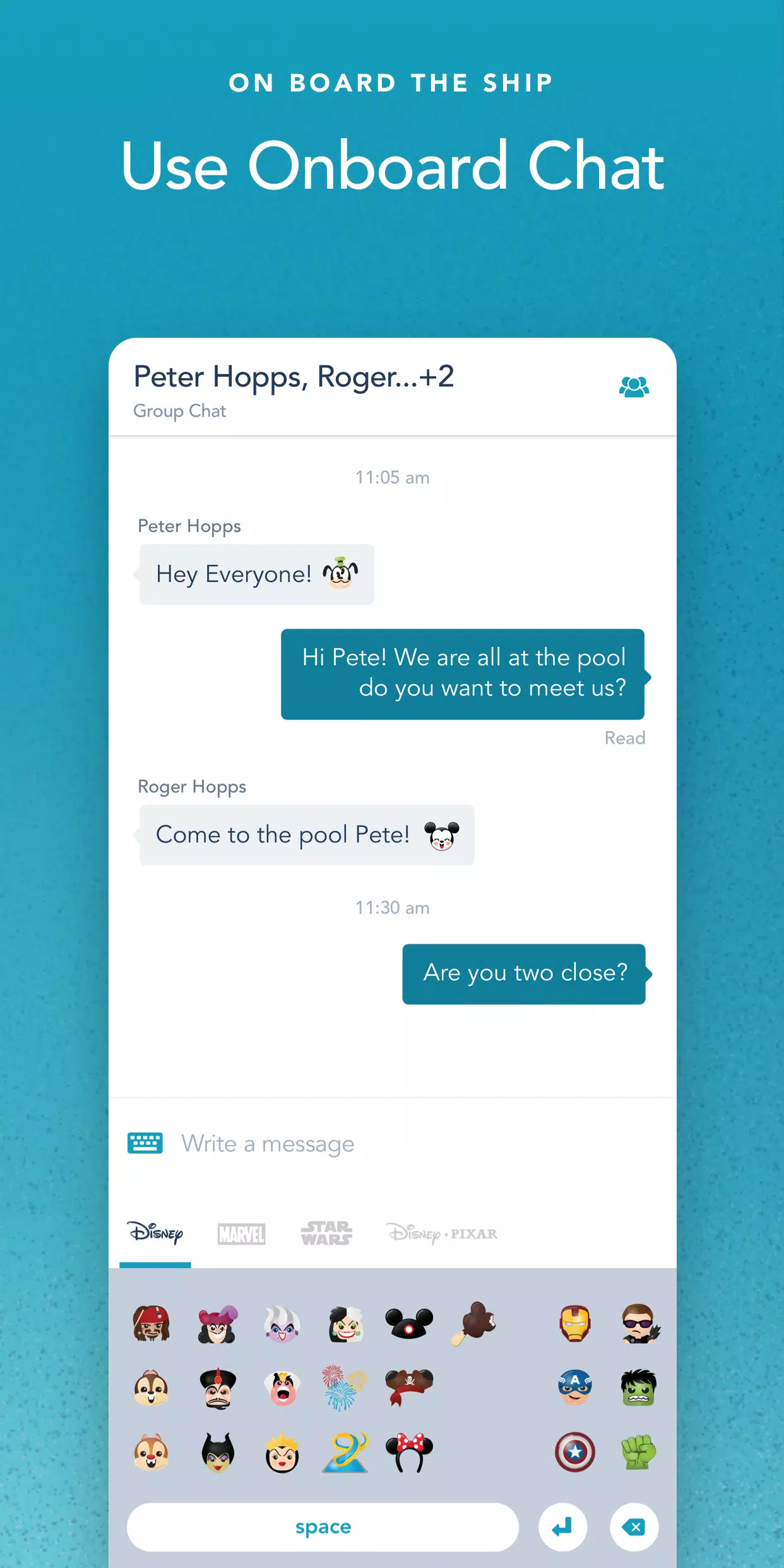 Onboard Chat: Stay connected with family, friends, and shipmates using the onboard chat feature, whether you're at home or sailing.